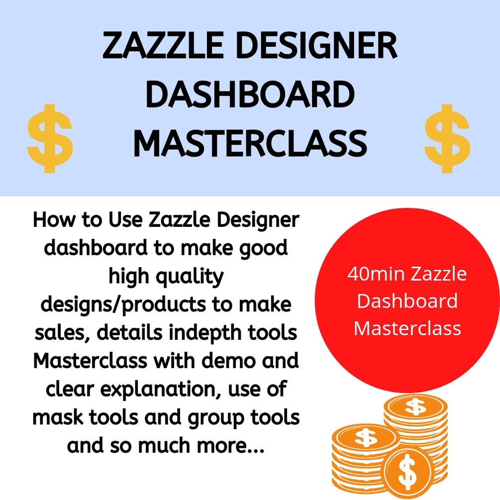 This MASTERCLASS is perfect for creators/designers selling on Zazzle, or looking to sell on Zazzle using Zazzle Designer Dashboard, in detail Masterclass on how to use Zazzle Designer Dashboard very simple easy steps explained in detail, use of all tools expalined in detail along with the demo, how. To make good quality designs that sells on Zazzle and make money consistently month after month, join this MASTERCLASS now to make good quality designs and bring in sales now! Cause designs matter alot for your sales!