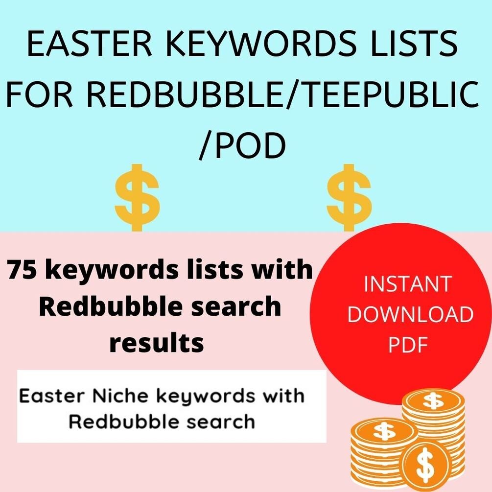 You will get PDF file containing Easter 75 keywords lists with Redbubble search results