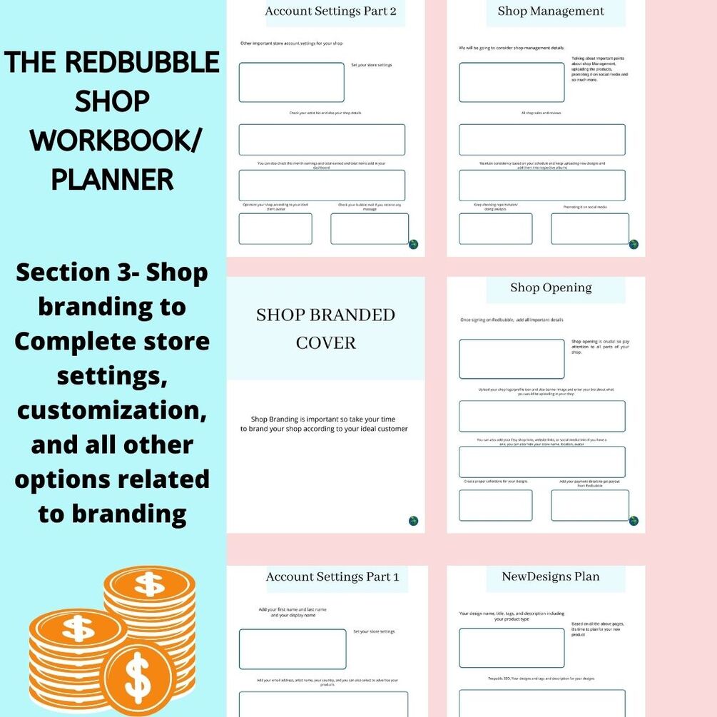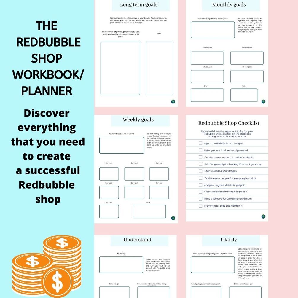 50 PAGES OF EXCLUSIVE REDBUBBLE SHOP PLANNER/WORKBOOK FOR A SUCCESSFUL REDBUBBLE SHOP