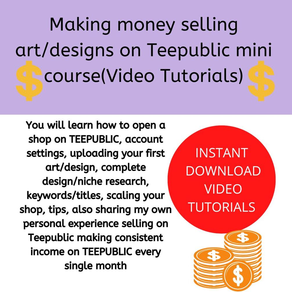 You will get in depth video tutorials for selling art/designs on Teepublic